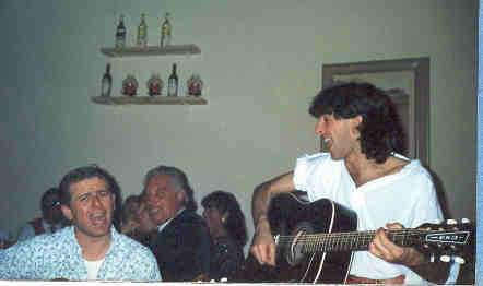 La taverna era il classico ristorante tipico dove a fine cena il responsabile invitava noi per intrattenere il pubblico o ancora meglio dopo lo spettacolo per vivere momenti di canti di gruppo e di sketches sempre molto divertenti sopratutto per quelli che non andavano a ballare in discoteca in genere frequentata dai ragazzi dello Junior club ovvero adolescenti di età compresa dai 12 ai 18 anni che in genere facevano branco nei divani adiacenti la discoteca piuttosto che riempire la pista da ballo. Al mini club invece oltre al mitico Gaetano d’Allara di Avezzano che tutt’ora gestisce un albergo di proprietà a Bardonecchia c’era il mitico fratello di Fiorello ovvero Beppe, ben lontano dall’immaginare ancora il suo futuro di attore di grande successo, era comunque anche lui un “monello” ma bravissimo nel saper coinvolgere le piccole creature anche se spesso se non ricordo male veniva ripreso dal responsabile per piccole questioni legate alla responsabilità del ruolo, sveglia, controlli, presenze; il tutto era giustificato dalla giovane età di Beppe che in ogni caso aveva una presenza pure lui “guarda caso” di grande carisma e accattivante nei modi sia con la gente che con i bimbi e the last out not the least piaceva a mamme figlie, alle donne in genere, inoltre era come il fratello, bravo nel canto anche se con un taglio più moderno nel senso che provava pure a fare dei pezzi Rap e siccome il genere affascinava pure me, è successo più di qualche volta che ci trovassimo a motteggiare la canzone di un gruppo olandese DJ Swen And Miker G. “HOLIDAY RAP” che altro non era che una cover della più popolare canzone di Madonna “HOLIDAY” anche se poi in pubblico spiccava molto di più la sua verve che la mia…